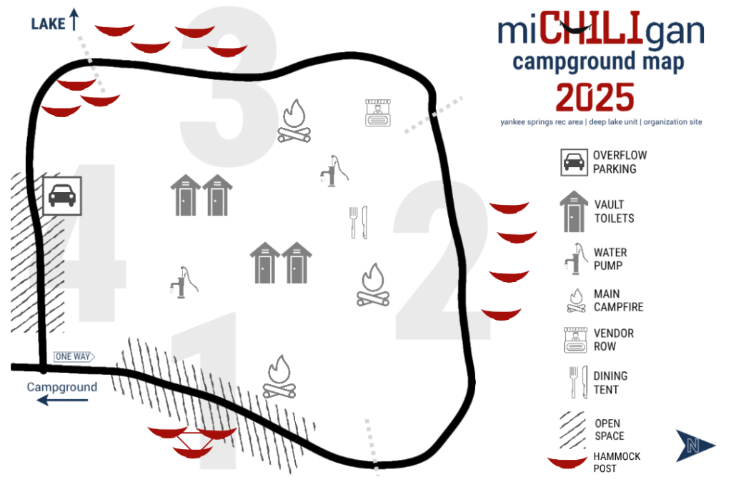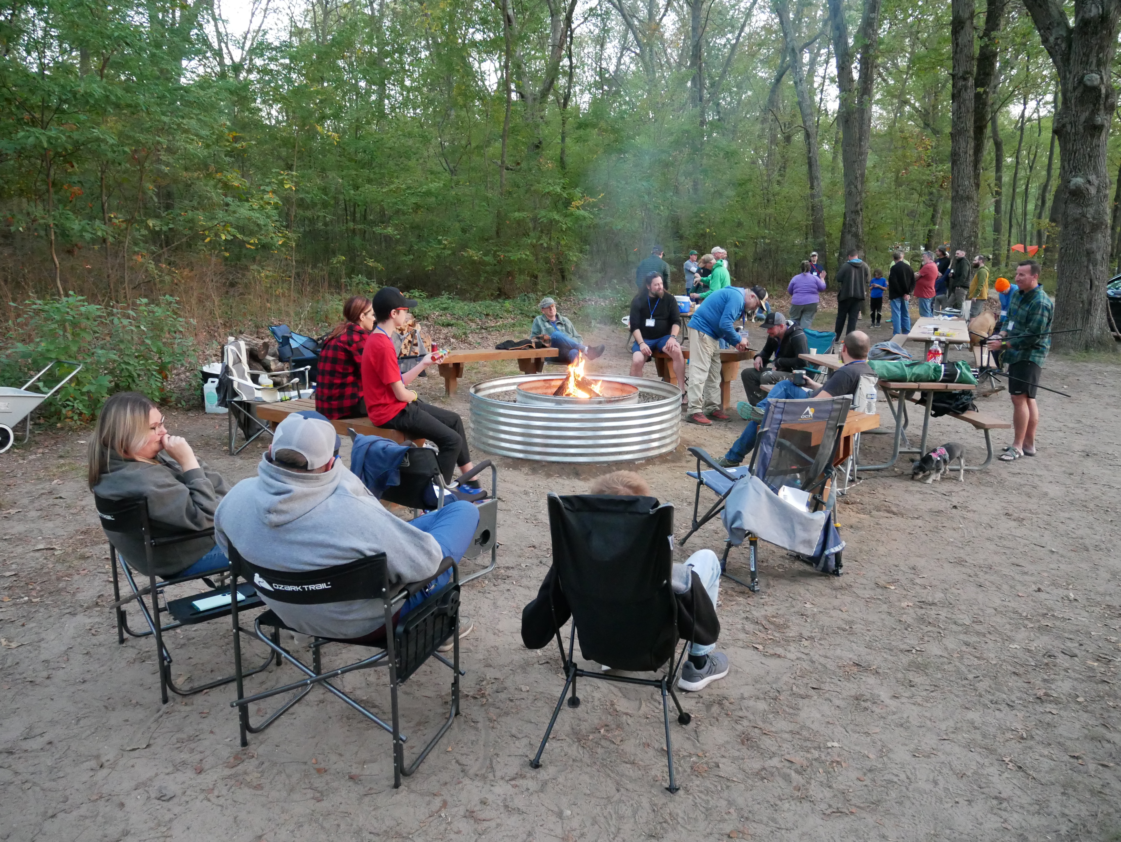 We gather at Deep Lake Campground in Yankee Springs Recreation Area — a cozy, wooded haven perfect for stringing up hammocks, cooking chili, and making memories under the trees.