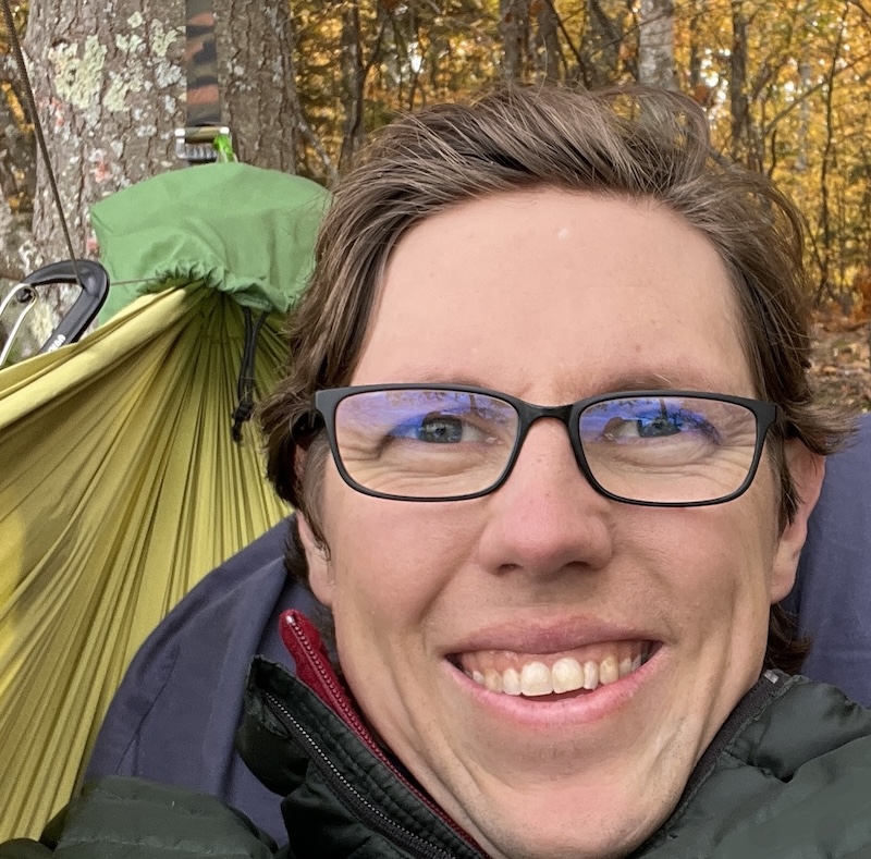 I grew up in Chicago but spent a lot of time tent camping in Michigan with family. I always believed sleepless nights were just part of the deal — until my friend Mitch invited me on a canoe trip and introduced me to the magic of hammock camping. Curious, I dove into the rabbit hole of hammock camping research including Shug’s videos. As a career arborist/tree climber, I found a lot of the knots I use can apply to hammocks. It just made sense to give it a try. I’m a strict side sleeper, so I was happy to find the Haven. Since then, I haven’t slept on the ground and have had the best sleep I’ve ever had while camping. I also love kayaking, paddleboarding, fishing, hiking and rock hounding. With a background in ecology and forestry, I’m endlessly fascinated by fungi, frogs, rocks, moss, and trees — basically, I’m a certified nature nerd, and I wouldn’t have it any other way.